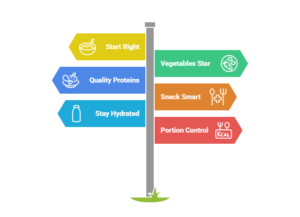Choose quality proteins: Include fatty fish twice a week, and opt for lean proteins like chicken, turkey, or plant-based options on other days.