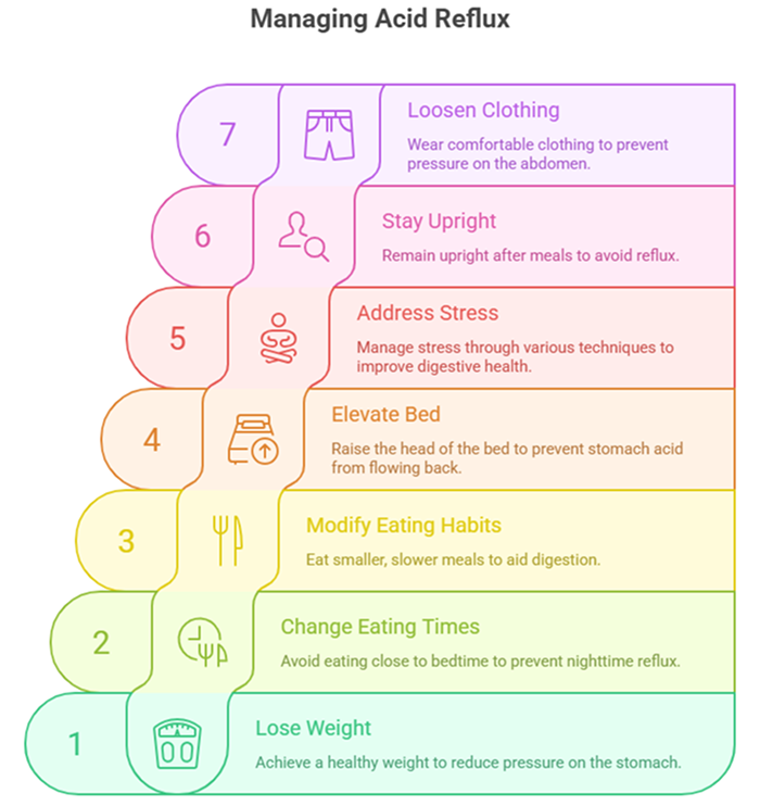 Lose weight if overweight: Even a 10-15 pound weight loss can dramatically reduce reflux symptoms. This is the single most effective intervention for many people.