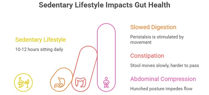 Your digestive system relies on movement. Physical activity stimulates peristalsis—the wave-like muscle contractions that move stool through your colon. When you sit for extended periods, everything slows down. Your colon becomes sluggish, stool moves more slowly, and more water gets absorbed from it, making it harder and more difficult to pass.